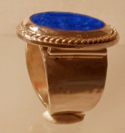 View 2 Shamanic ring superb Afghan lapis lazuli stone size 20 x 25 x 5 mm intense energy many gem stones available 14k, 18k, 22k Santa Fe Yellow Gold size made to order phenomenal energy for woman or man item # widebndringgold1 $3779.99 with 14k gold with lapis lazuli center stone |