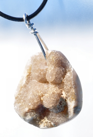 View 2 View 3 Crazy Lace Agate talisman pendant Sweet Shamanic healing tool druzy side & polished side sterling silver bail adjustable leather necklace included 38 x 35 x 12 mm (stone alone) FREE SHIPPING item # crazyltalis1 $139.99 |