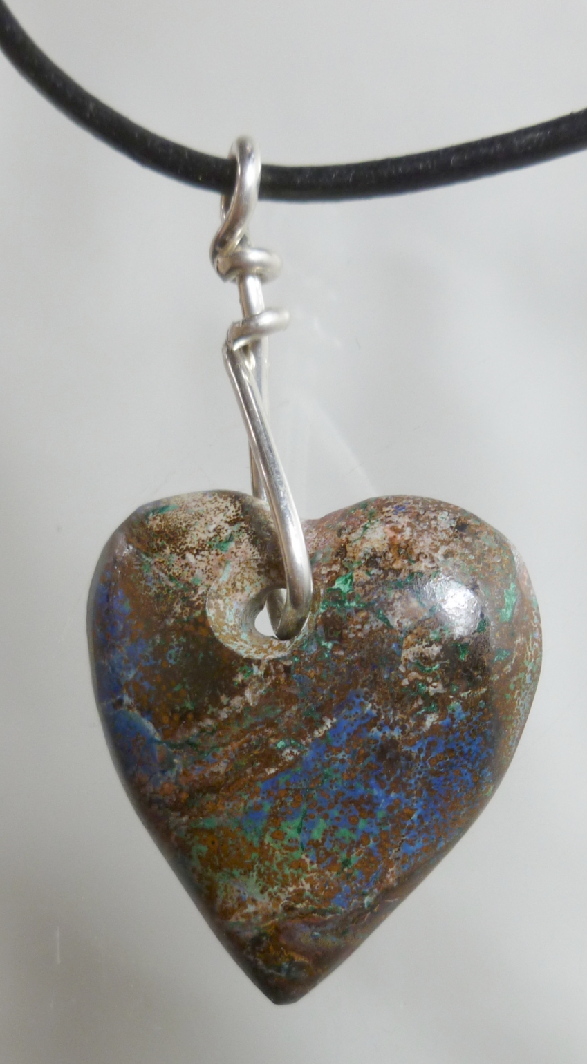 View 2 Madagascar Ocean Jasper heart talisman pendant Powerful Shamanic healing beauty 30 x 30 x 5 mm (stone alone) sterling silver bale adjustable leather necklace included FREE SHIPPING item # oceanjasphrttalis-1 $199.99 |
