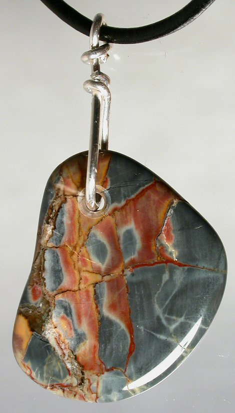 View 2 Morrisonite jasper talisman pendant focal point bead Amazing Shamanic energies healing meditation tool sterling silver bail adjustable leather necklace included 33 x 30 x 4 mm (stone alone) $239.99 FREE SHIPPING item # morrisonpend3 |
