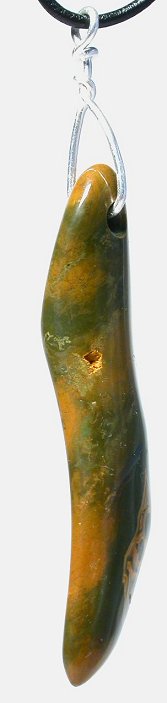 View 2 River Rock pendant focal point bead Calming for peaceful a relationship Pacific energies Jade Cove Big Sur California sterling silver bail adjustable leather necklace included 35 x 26 x 10 mm item# pendrrjc2 $175.99 many variations are possible inquire for yours Order Now to receive FREE SHIPPING! |