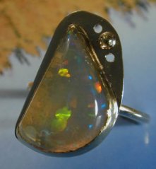 View 2 Australian Jelly Opal ring womans ring sweet crystalline depths delightful soft energy 14k and 22k gold sizes 5 thru 9 also available in sterling Item # jellyopalrng3a $3995.99 in gold |