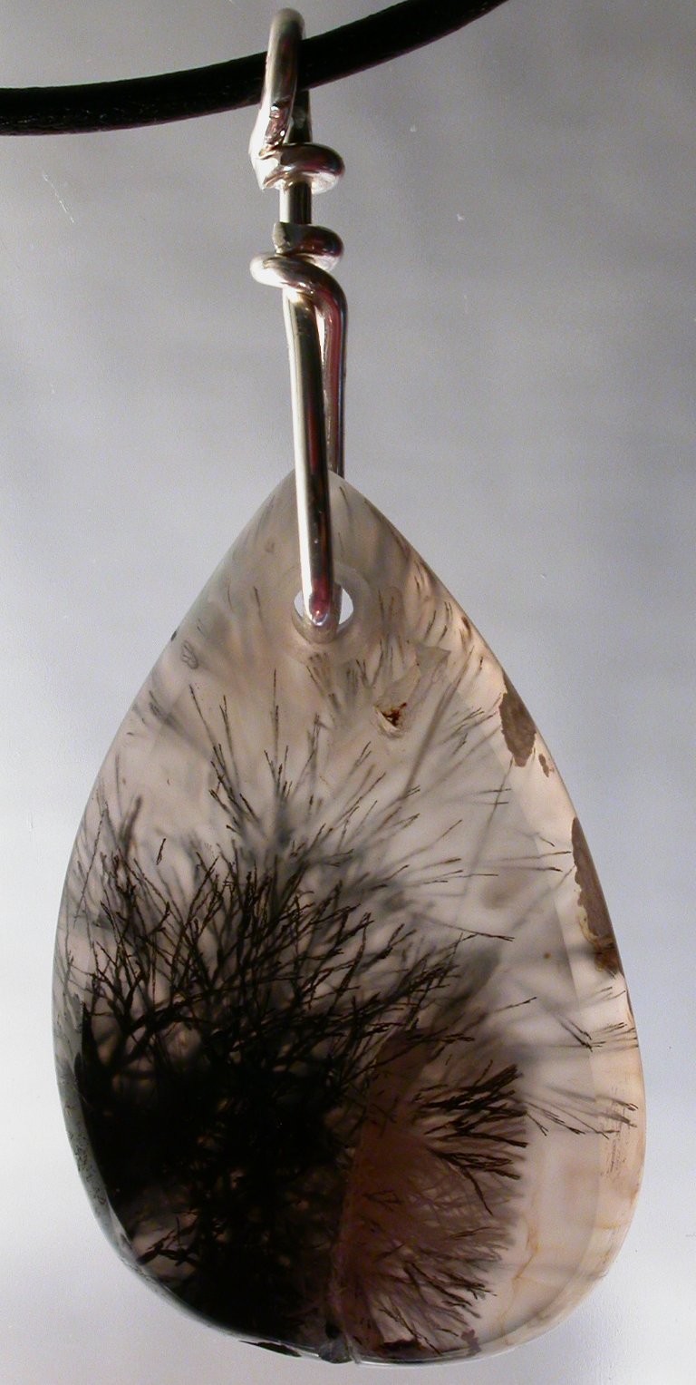 View 2 Dendritic Agate talisman pendant Beautiful flame in black crystal color Powerful Shamanic portal key energies 35 x 35 x 3 mm (stone alone) sterling silver bail adjustable leather necklace included FREE SHIPPING item # dendagtalis1 $149.99 |