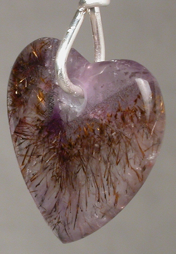 View 2 Auralite23 Super 7 healing heart talisman Awesome healing energy Hand carved by Mystic Merchant - Billy Mason 30 x 30 x 5 mm sterling silver bale adjustable leather necklace included FREE SHIPPING item # auralite23hrttalis-303 $333.99 |