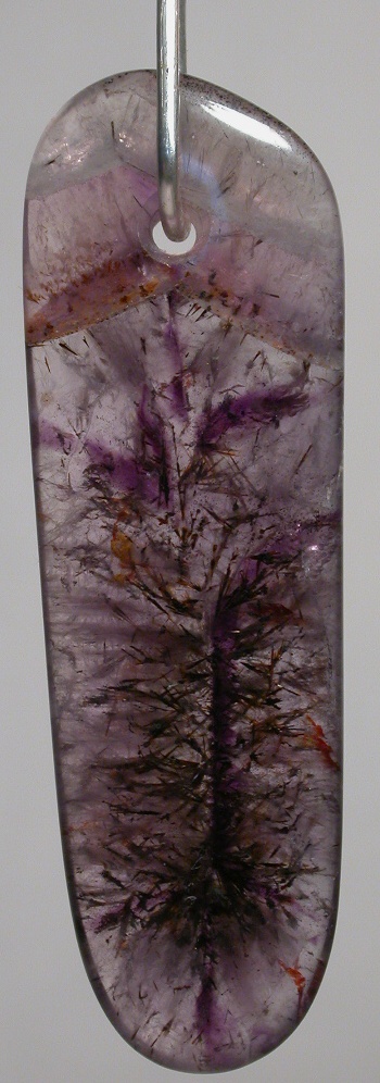 View 2 View 3 Amethyst Cactus Spirit Quartz polished slice pendant Amethyst Quartz pendant Magliesburg Quartz pendant focal point bead Incredible healing energy Powerful Shamanic tool sterling silver bail adjustable leather necklace included FREE SHIPPING 30 x 30 x 4 mm FREE SHIPPING item# cactusamyslcpend3 $139.95 |