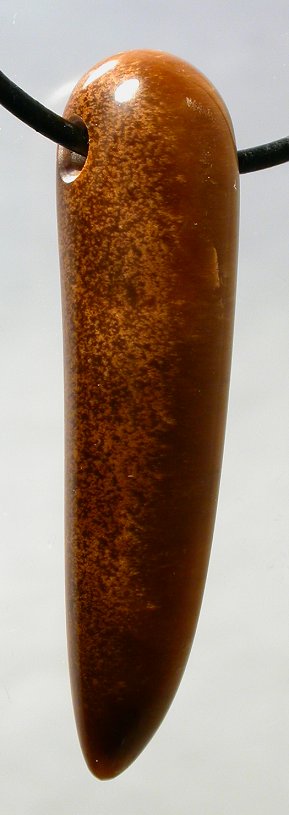 View 2 View 3 View 4 Freeform talisman pendant jewelry hand carved by Billy Mason iron stained orthoquartzite beauty mined in Chatham County NC powerful Shamanic healing meditation Much sought after in Europe for its blissful sweetness "Wear a piece of the Piedmont" steriling silver bail adjustable leather necklace included 35 x 30 x 8 mm FREE SHIPPING item # chathamorthotalis102 $199.99 |