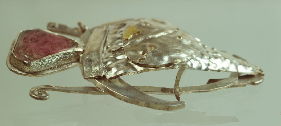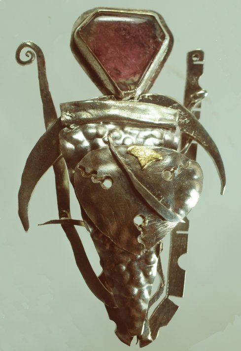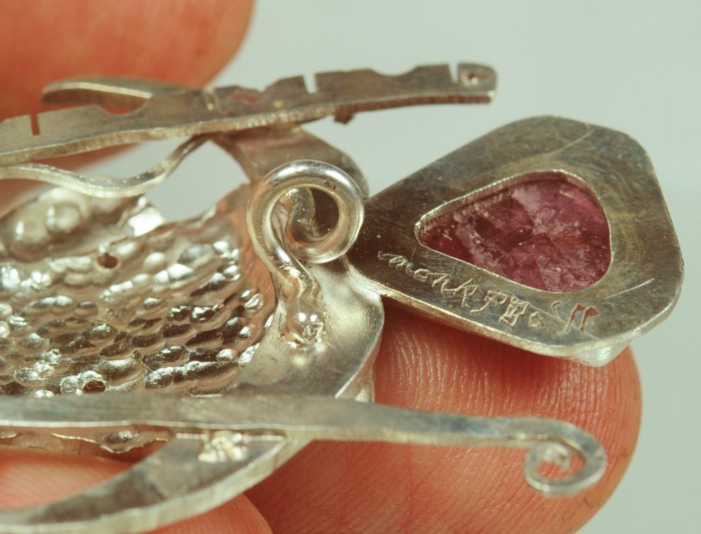 View 2 View 3 View 4 View 5 View 6 View 7 View 8 View 9 Watermelon tourmaline Shaman talisman pendant, brooch Very powerful Shamanic energy 1st & 6th chakra opening tool watermelon tourmaling head repousse sterling silver body and tools 14k carved gold owl detail hand carved by Mystic Merchant - Billy Mason 53 x 39 x 9 mm adjustable leather necklace included can also be worn as a brooch FREE SHIPPING item # wmshamantalis-1 $3339.99 |